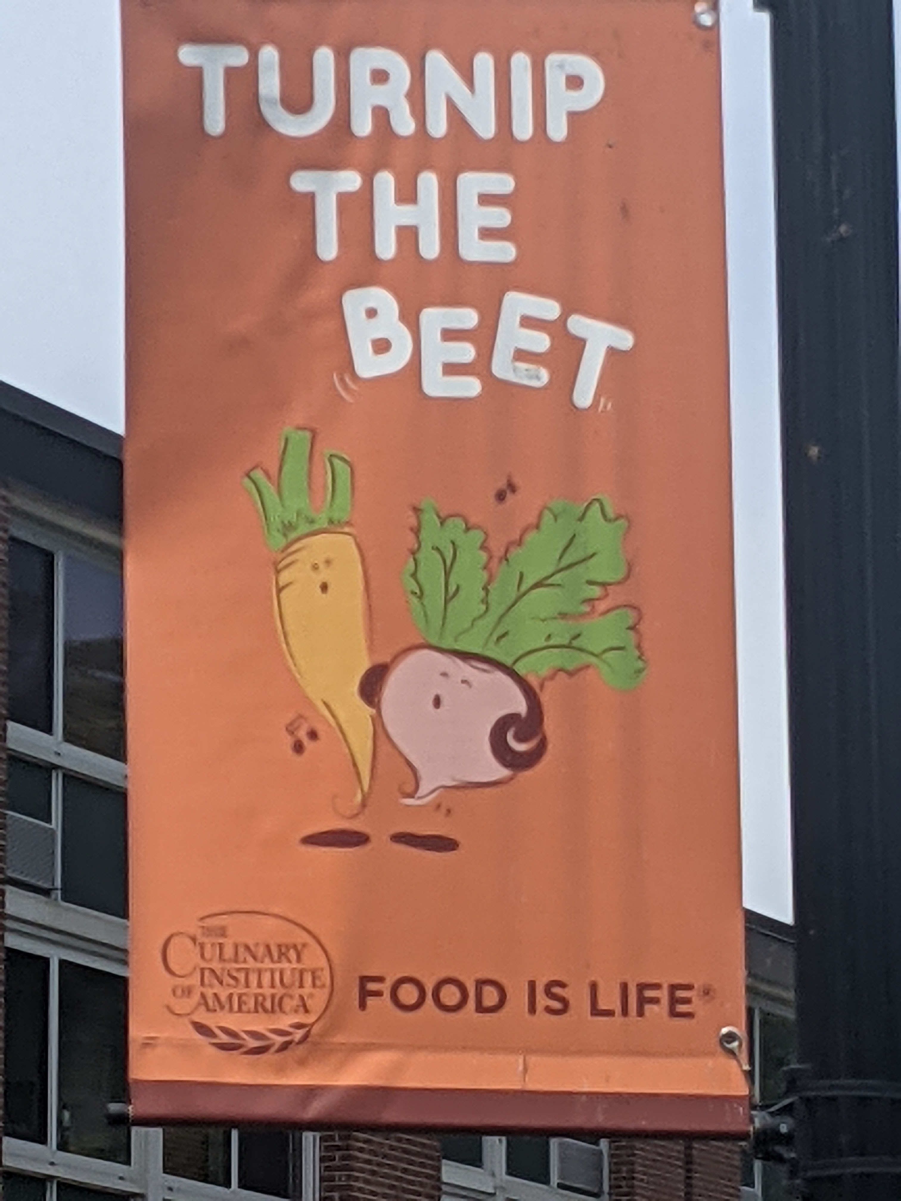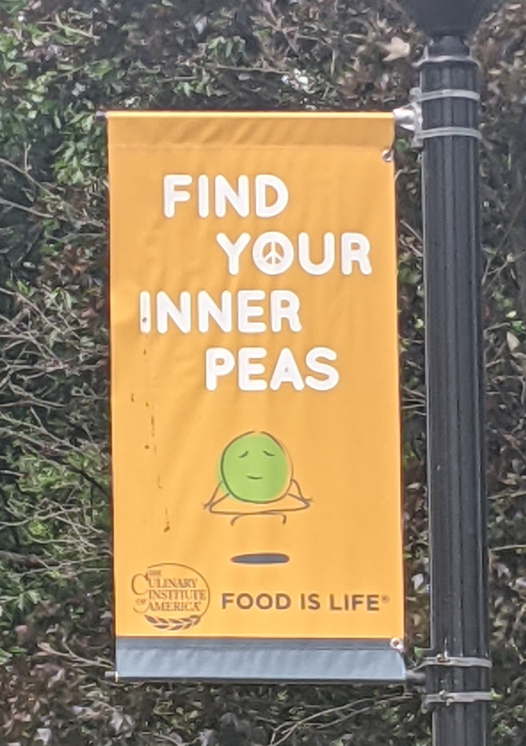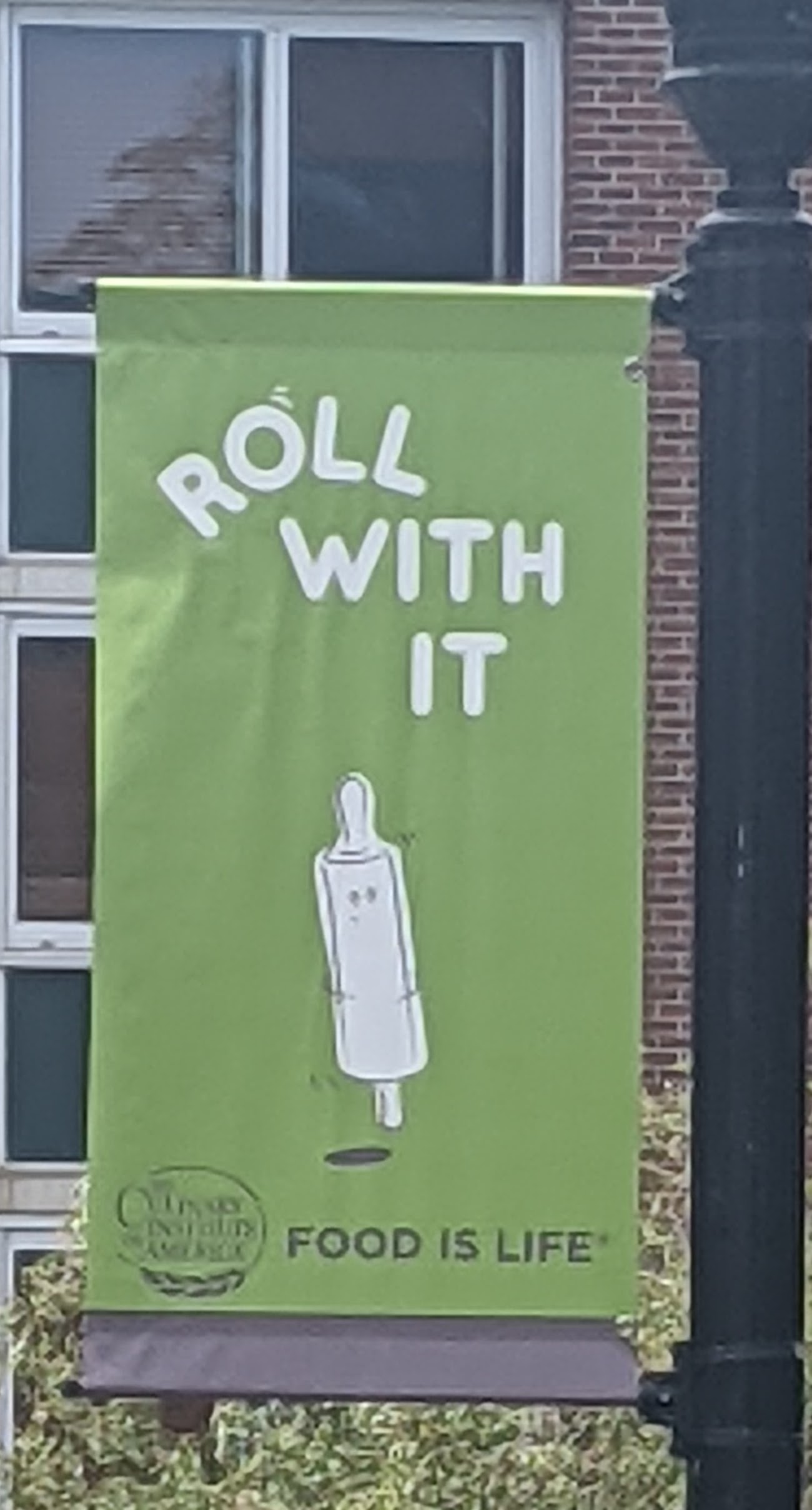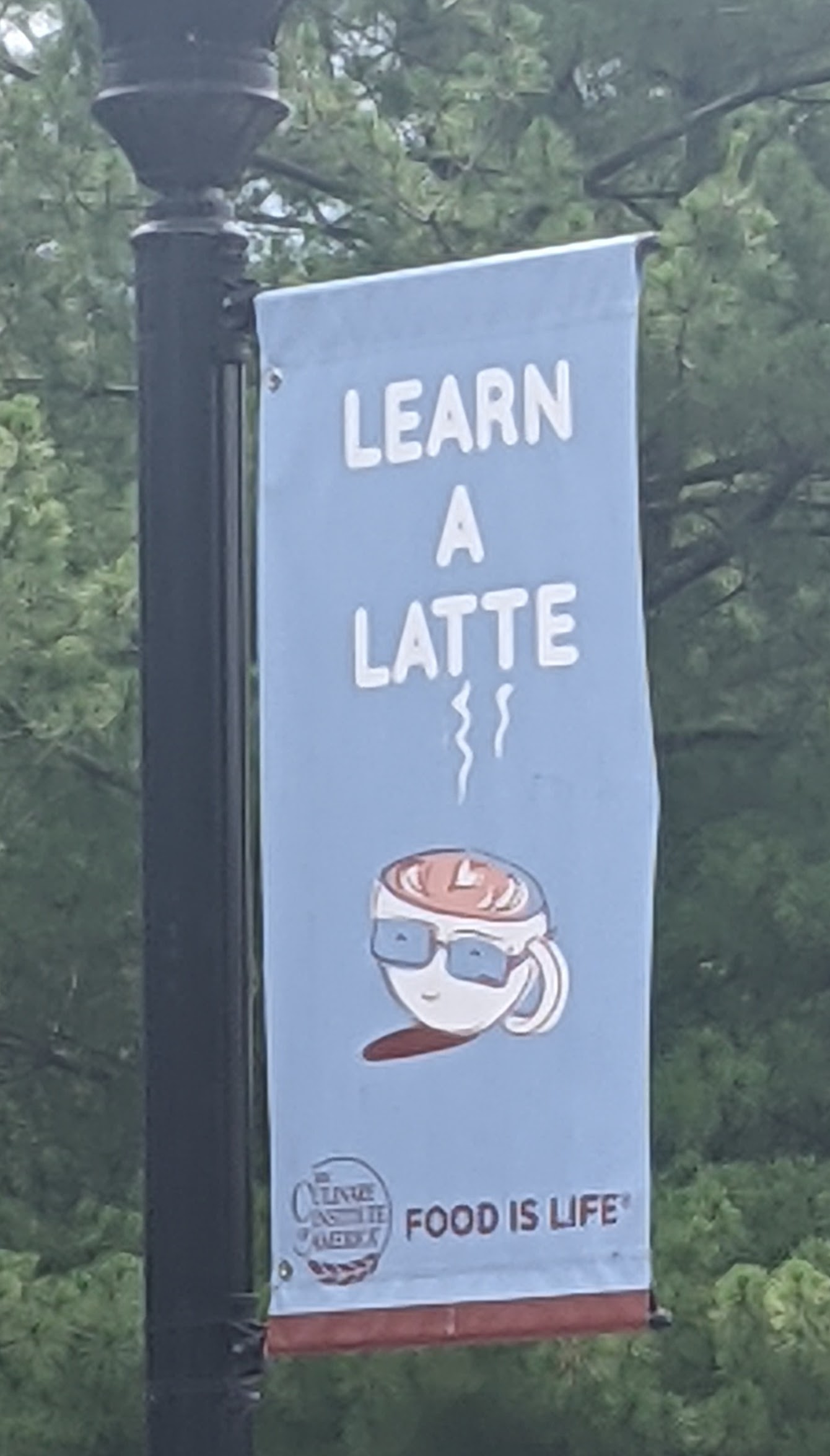 The Culinary Institute of America is a college campus in an upscale atmosphere with a creative twist. It had gardens, fountains and sculptures. Some of my favorite banners: