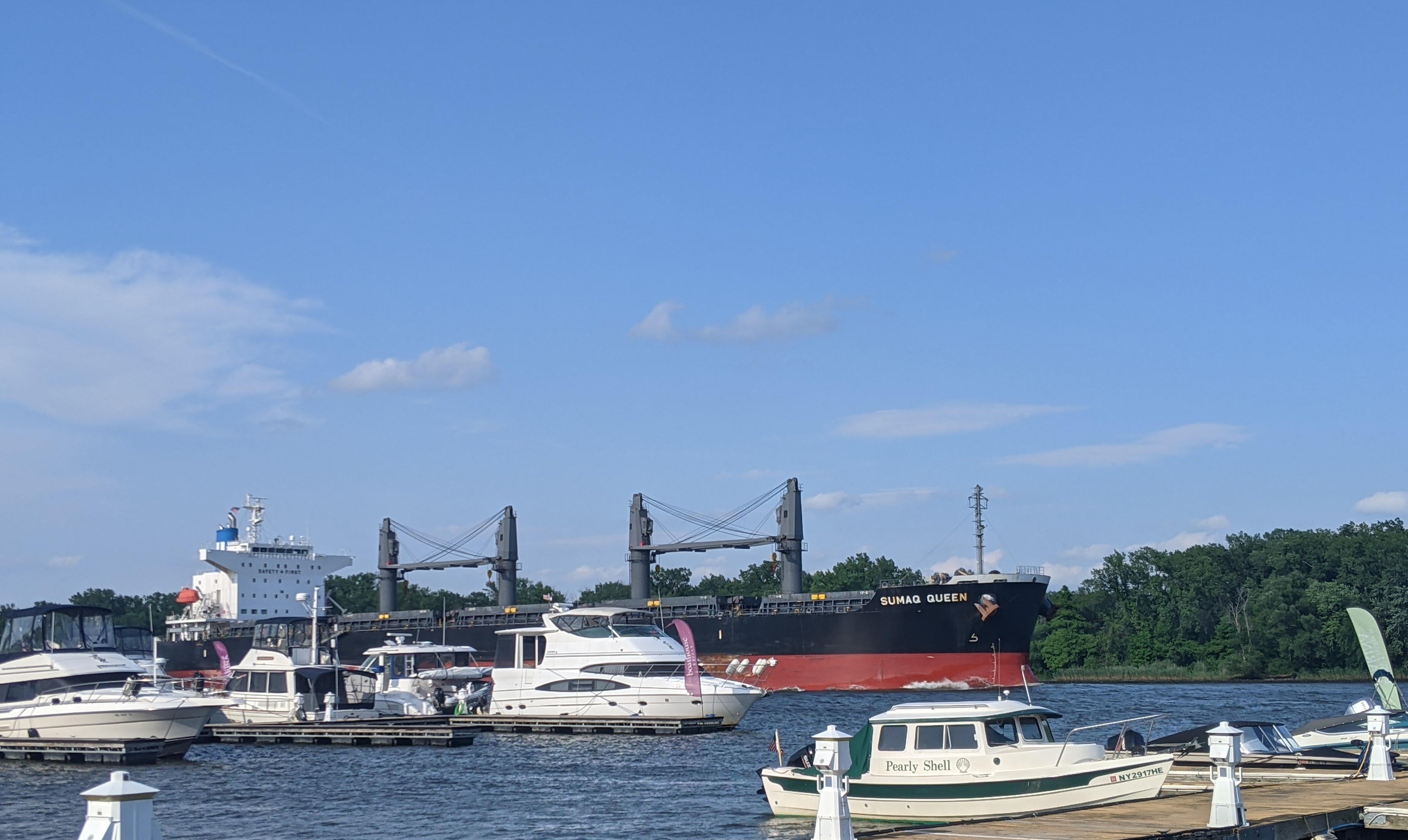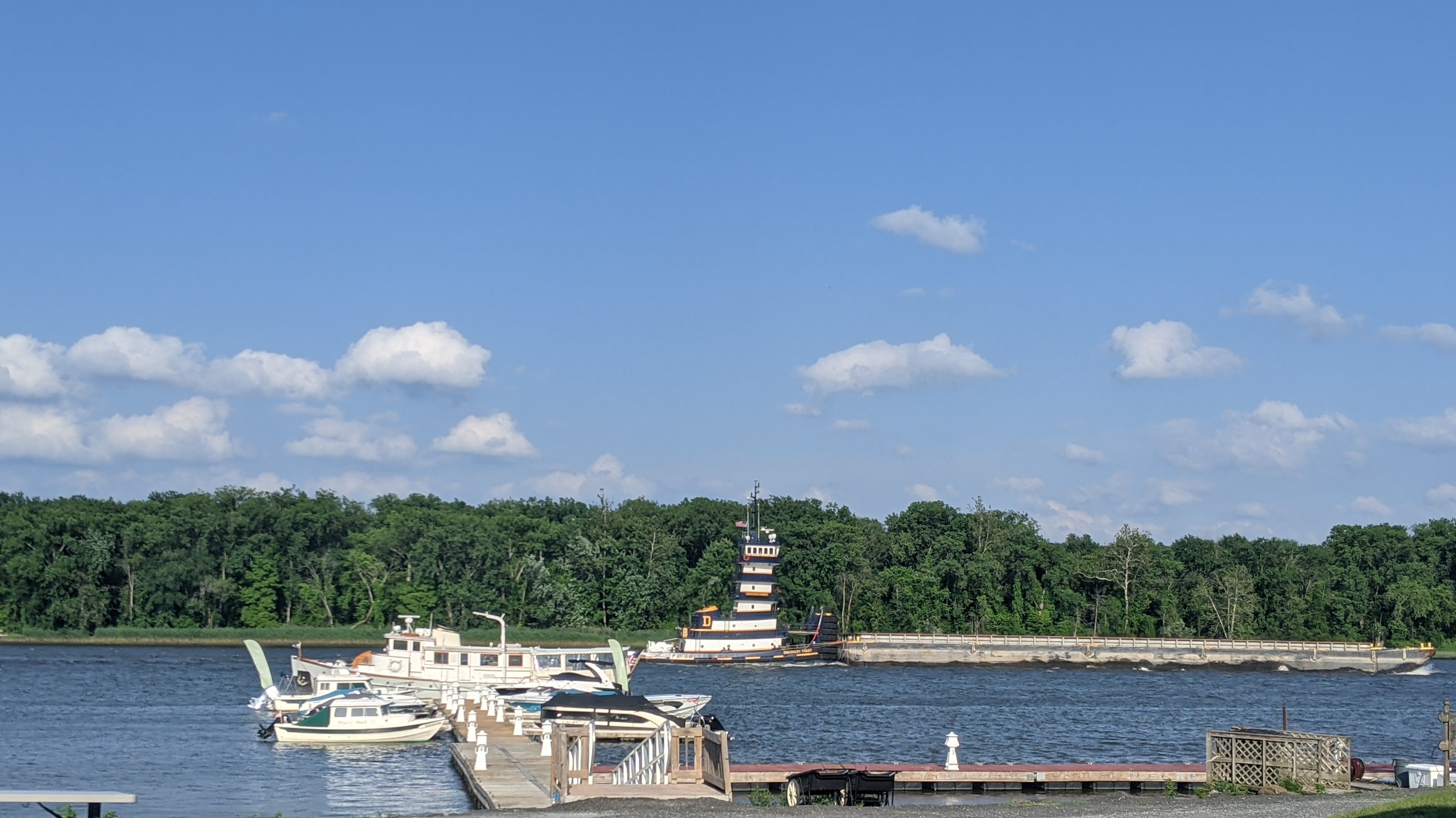 An interesting tidbit about the Troy lock- in 1609 a boat from Henry Hudson’s ship, Half Moon, explored the Hudson River as far north as the present city of Troy, in search of a route to the Orient. I am impressed with the Hudson myself-it is wide, long and deep. Barges and freighters are going by not far off the marina docks. They seem to throw no wake, impressive.