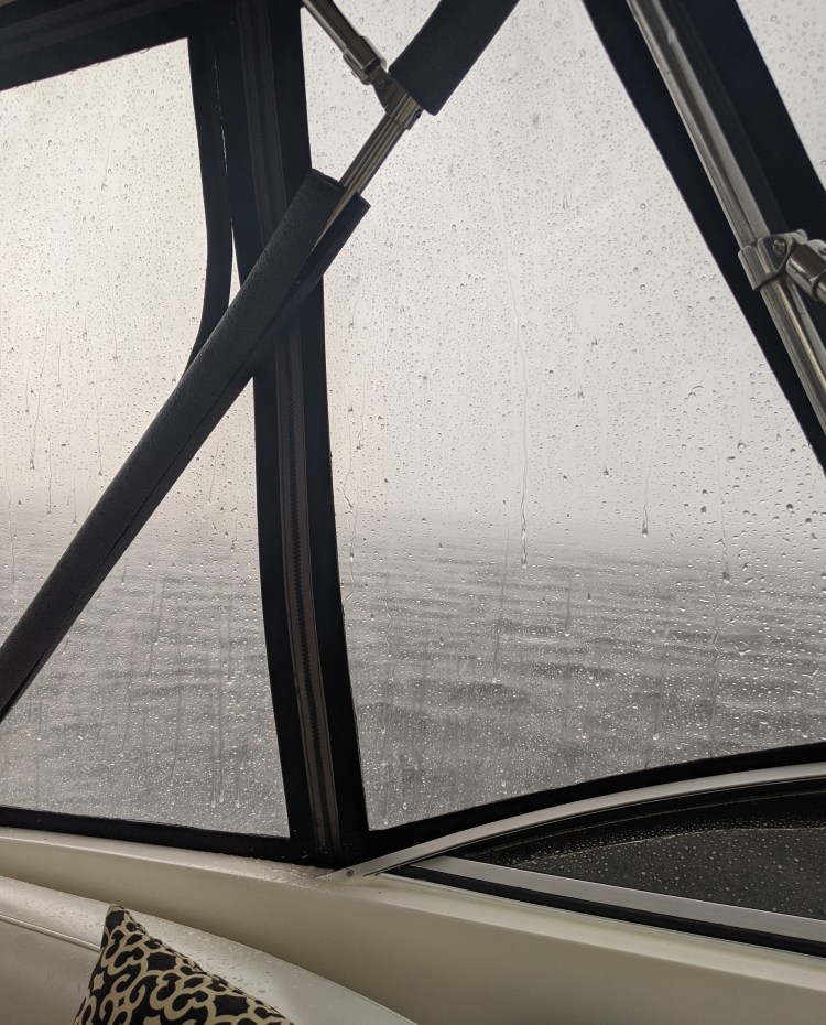 On Wednesday we head back out Otter Creek headed for Willsboro Bay, on the New York side of Lake Champlain. After the hour ride out of the Creek we had about another hour to our anchorage. We stopped and took pictures of the cottage Jim’s family had rented. Just to make it a little exciting we decided to plow through a predicted thunderstorm. Clouds were dark, winds kicked up, thunder and lightening. I made everyone put on their life jackets (although honestly I don’t know how they would help) and said some prayers. It passed as quickly as it started.