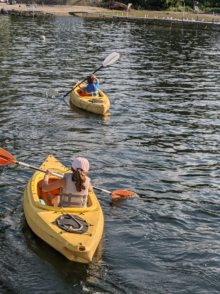 We have had a good amount of cool and rainy weather this season but we are now having some classic sunny, swimming summer days. The ‘grands’ have gotten so confident in their kayaking/paddle boarding skills that they are launching and tying up by themselves. So impressive!