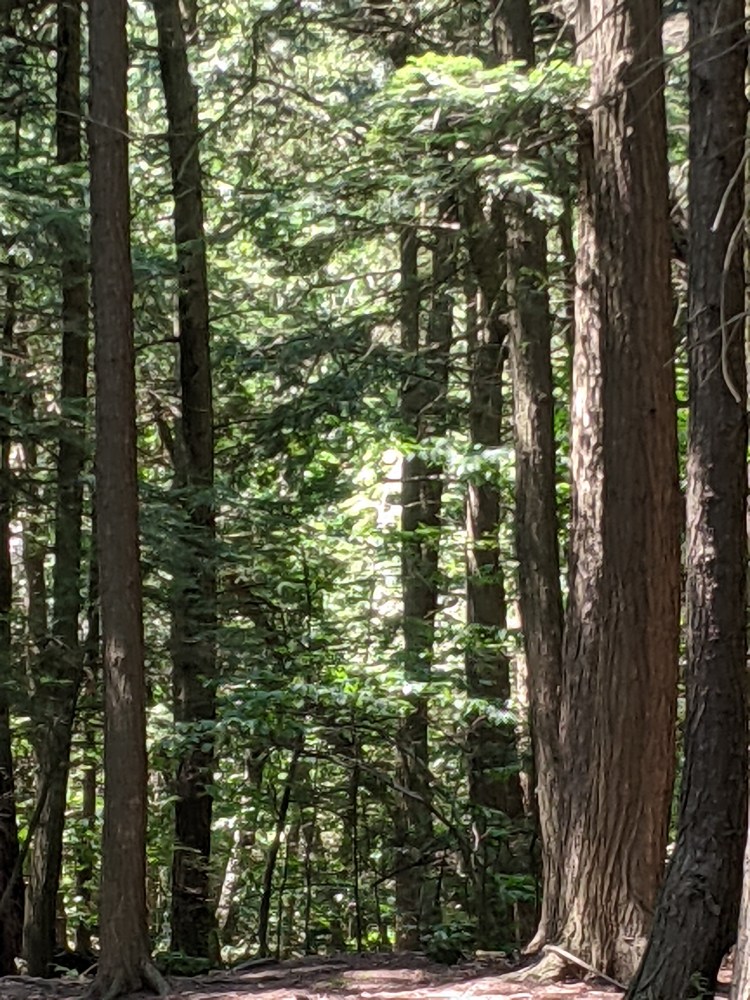 Saturday morning the gang took off for home and Irish Eyes headed to Deep Bay for 2 nights. Deep Bay has a significant mooring field in a nice deep bay surrounded by a state park. Unlike the last mooring field, this one was clearly public. The posted rate was $26/night. However, because there are no Canadians cruising these waters this summer they were not going around collecting the fee– too few boaters! There were 5 of us for the overnight and they have capacity for 30+. We dinked into shore for a nice flat hike.