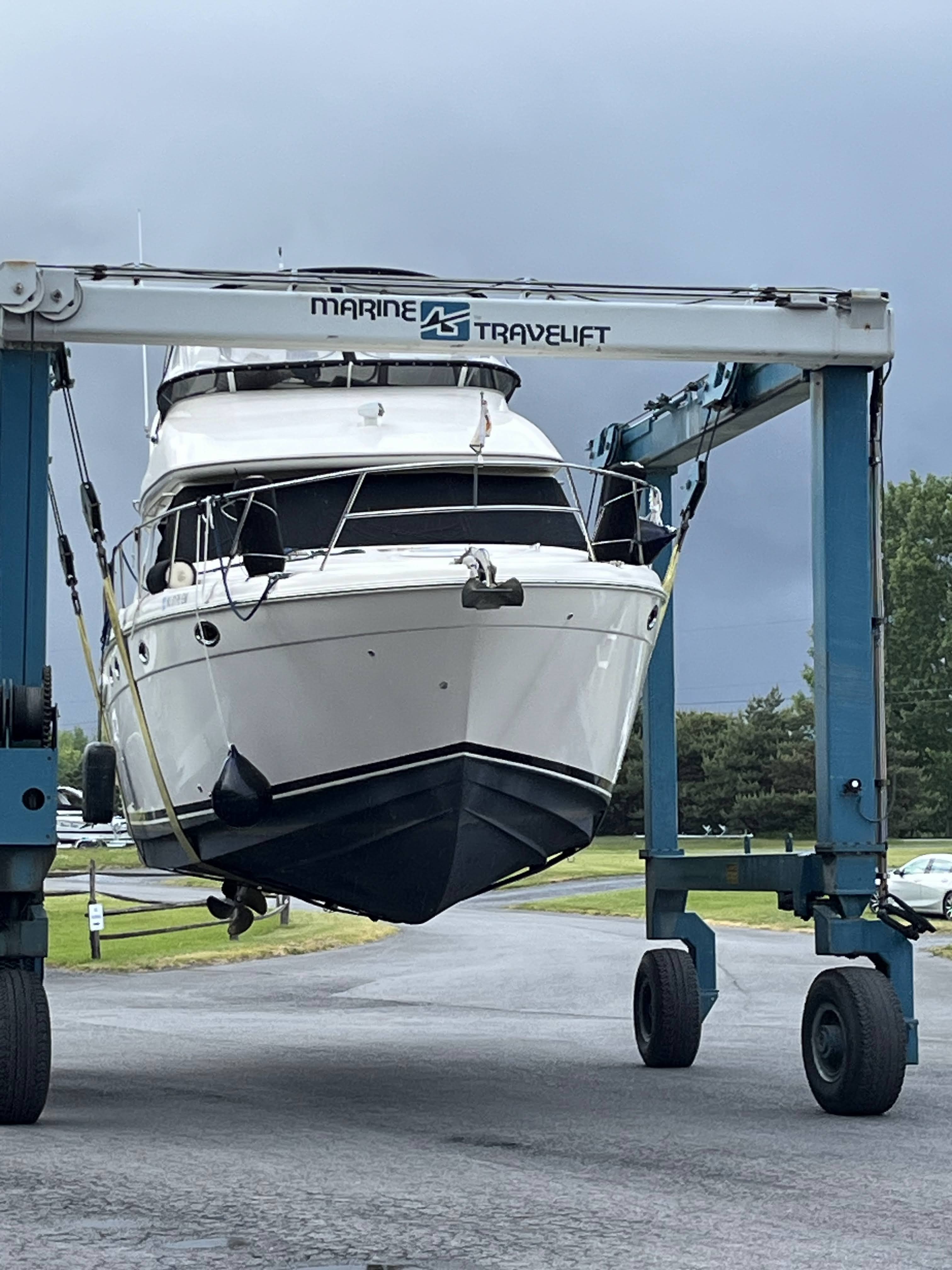 After she was lifted into the water we brought her around to our slip for the night and were happy to realize both the Captain and first mate remembered how to operate this vessel. The next day we took a brief ride on Lake Champlain and then over to another marina for the next week and a half to have it detailed and get a few minor repairs done.