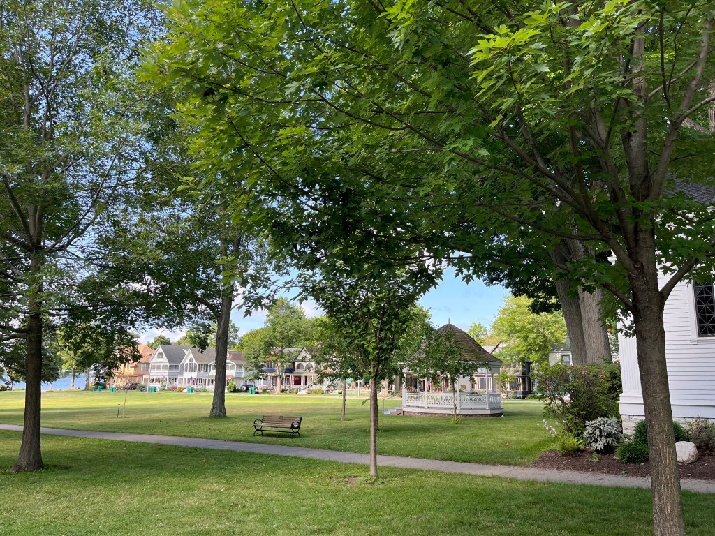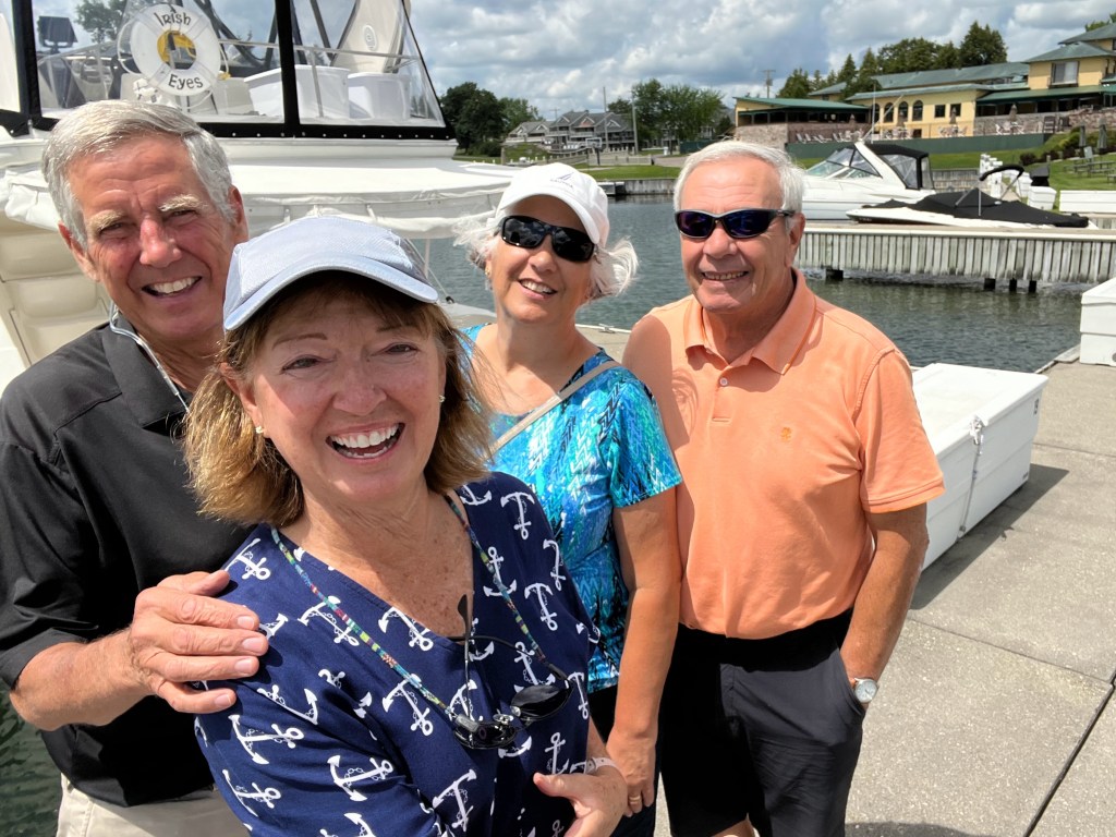 Other highlights of the area include Thousand Island Park which is a community within the town of Orleans. It was established as a religious camp community in 1875. It reminds me of Ocean Grove NJ and Oak Bluffs on Martha’s Vineyard. Very cute Victorian cottage type homes, very family oriented. Another tourist ‘must see’ is Boldt Castle- it was built by millionaire George Boldt as a present to his wife. Construction was stopped abruptly in 1904 after his wife’s death and never completed. It is not as formal as some such estates and the views of the waterway were spectacular on all sides. Jim’s cousin Peggy & husband Michael visited with us for this day.